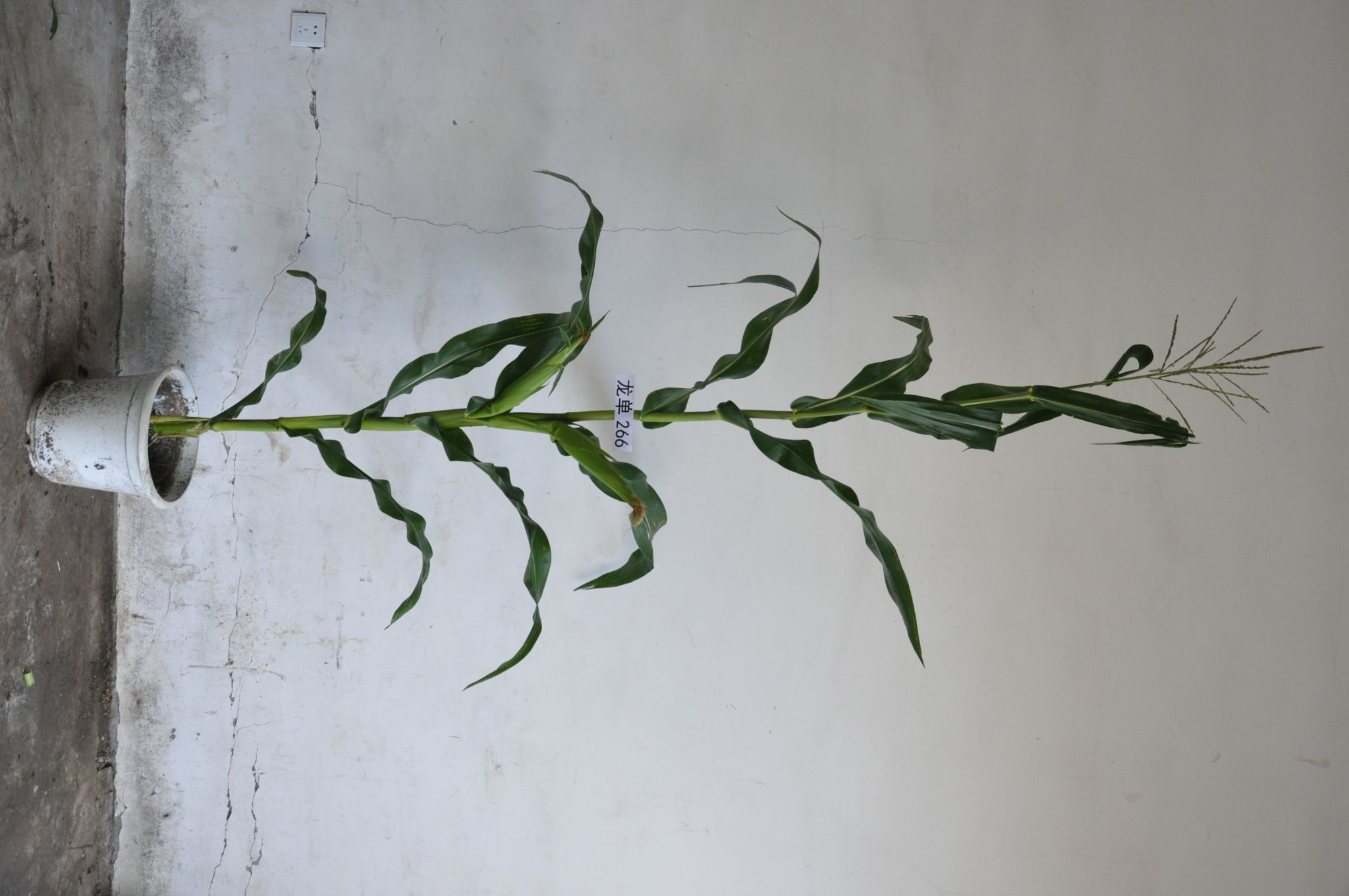 玉米研究所于2015年利用玉米自交系LX457(母本)和玉米自交系LX459(父本)杂交育成。种子出苗能力强,幼苗健壮,幼苗叶鞘紫色,叶色深绿色,茎绿色,穗上叶片数7片,成株株高292厘米,穗位高112厘米,可见叶12片,株型收敛;花药紫色,花丝浅紫色,雄穗一级分枝12~14个,苞叶长度适中。果穗长锥型,穗轴红色,穗长18.5厘米,穗粗4.6厘米,穗行16~18行,籽粒黄色,粒型偏马齿型。两年品质分析结果:容重767~774克/升,粗蛋白11.01%~11.66%,粗脂肪3.04%~4.41%,粗淀粉70.02%~70.20%,赖氨酸0.30%~0.31%。三年抗病接种鉴定结果:感大斑病,丝黑穗病发病率2.1%~16.1%,茎腐病发病率0.0%~3.2%,抗镰孢穗腐病。