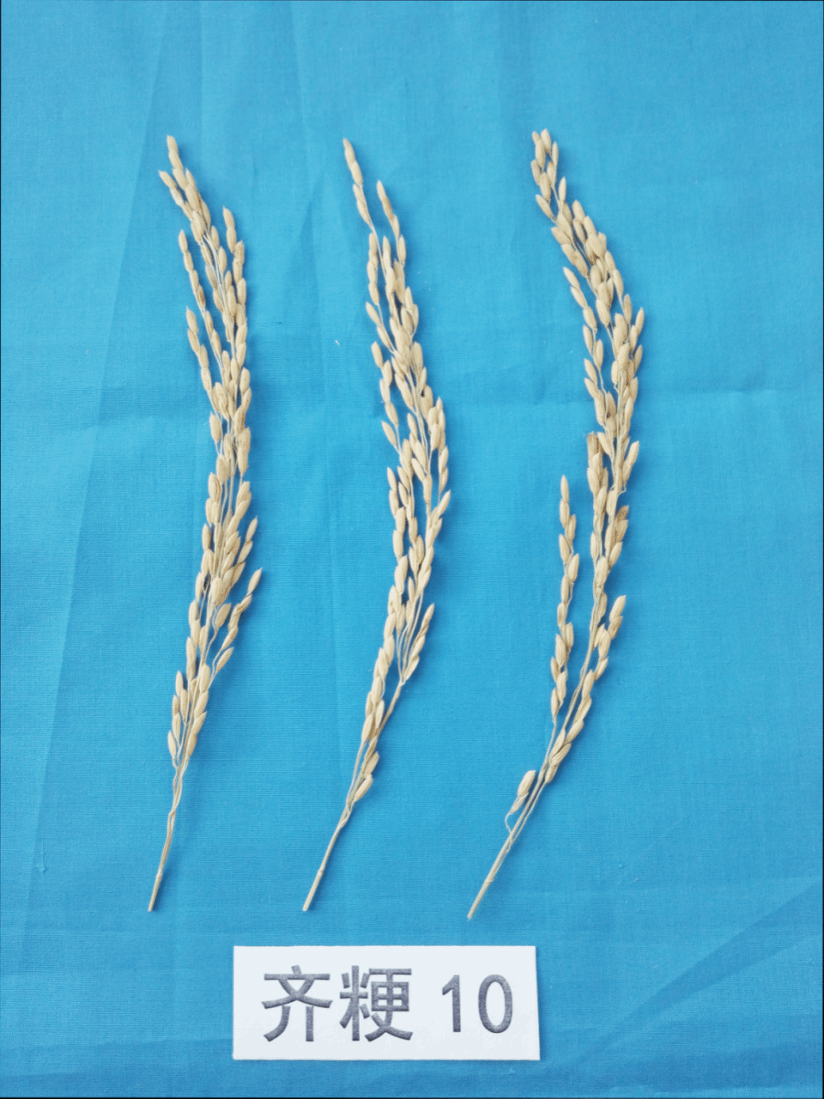 齐齐哈尔分院以五优稻4号为母本,绥粳4号为父本,系谱方法选育而成。齐粳10米粒晶莹剔透、米饭香气浓郁、口感极佳,自审定以来,连续5年被黑龙江省农业农村厅列为优质高效主导水稻品种,且荣获第八次全国优良食味粳稻品评特等奖。齐粳10在pH8.9的苏打盐碱地亩产高达509.1公斤,表现出较强的耐盐碱性,被誉为“盐碱地里的早熟稻花香”。