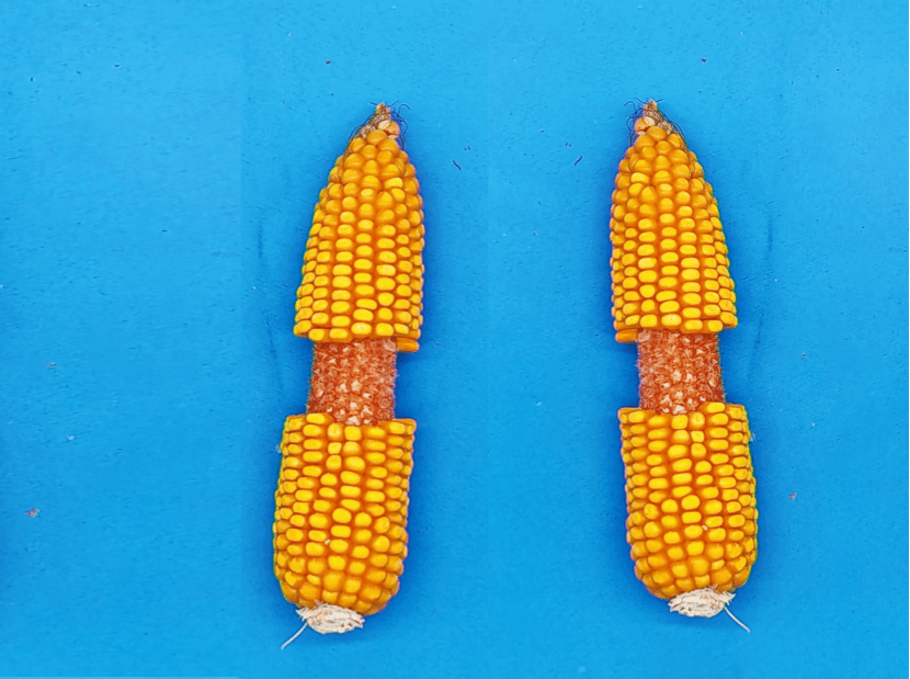 特征特性:普通玉米品种。在适应区出苗至成熟生育日数为113天左右,需≥10℃活动积温2200℃左右。该品种幼苗期第一叶鞘紫色,叶片深绿色,茎绿色。颖壳绿色,花丝浅紫色,花药绿色。株高242厘米,穗位高89厘米,成株可见13片叶。果穗长筒型,穗轴红色,穗长19.4厘米,穗粗4.7厘米,穗行数14~18行,籽粒硬粒型、粒色黄色,百粒重30.2克。两年品质分析结果:容重778~792克/升,粗蛋白10.28%~10.35%,粗脂肪3.37%~3.79%,粗淀粉75.17%~75.76%。三年抗病接种鉴定结果:感大斑病,丝黑穗病发病率1.0%~19.3%,茎腐病发病率0.0%~3.2%,中抗镰孢穗腐病。2022~2023年参加联合体区域试验,平均公顷产量12059.2公斤,比对照品种“克玉19”平均增产7.6%。2024年联合体生产试验,平均公顷产量11141.9公斤,比对照品种“克玉19”平均增产11.9%。