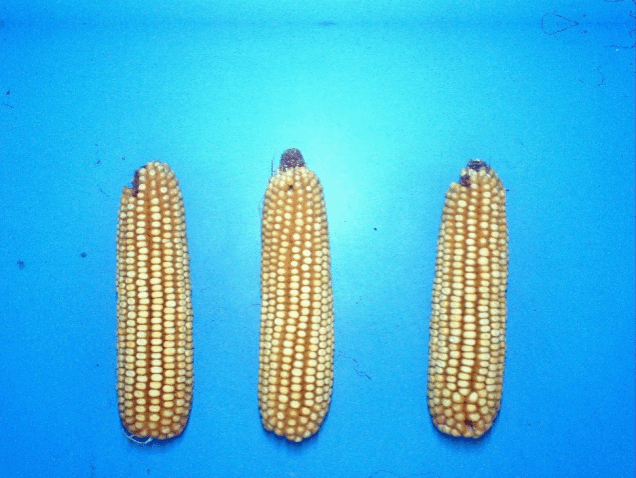 特征特性:该品种生育期119天左右,全生育期需活动积温2400℃,比对照东农265早熟1天。幼苗长势强,叶鞘紫色,花丝绿色,花药绿色。株型半紧凑,株高294厘米,穗位94厘米左右。果穗筒型,穗轴红色,穗长18.7厘米,穗粗4.7厘米,穗行数16~18行,行粒数38~40粒,籽粒黄色,百粒重32.3克,籽粒马齿型。经初步品质分析,黑农玉106粗蛋白含量12.20%左右,粗脂肪含量4.03%左右,粗淀粉含量72.16%左右,容重782克/升。中抗丝黑穗病、抗茎腐病、抗穗腐病、抗倒伏。2023年单位内品种比较试验平均公顷产量10846.2公斤,较对照品种东农265平均增产8.6%;2024年单位内品种比较试验平均公顷产量11048.3公斤,较对照品种东农265平均增产8.9%。