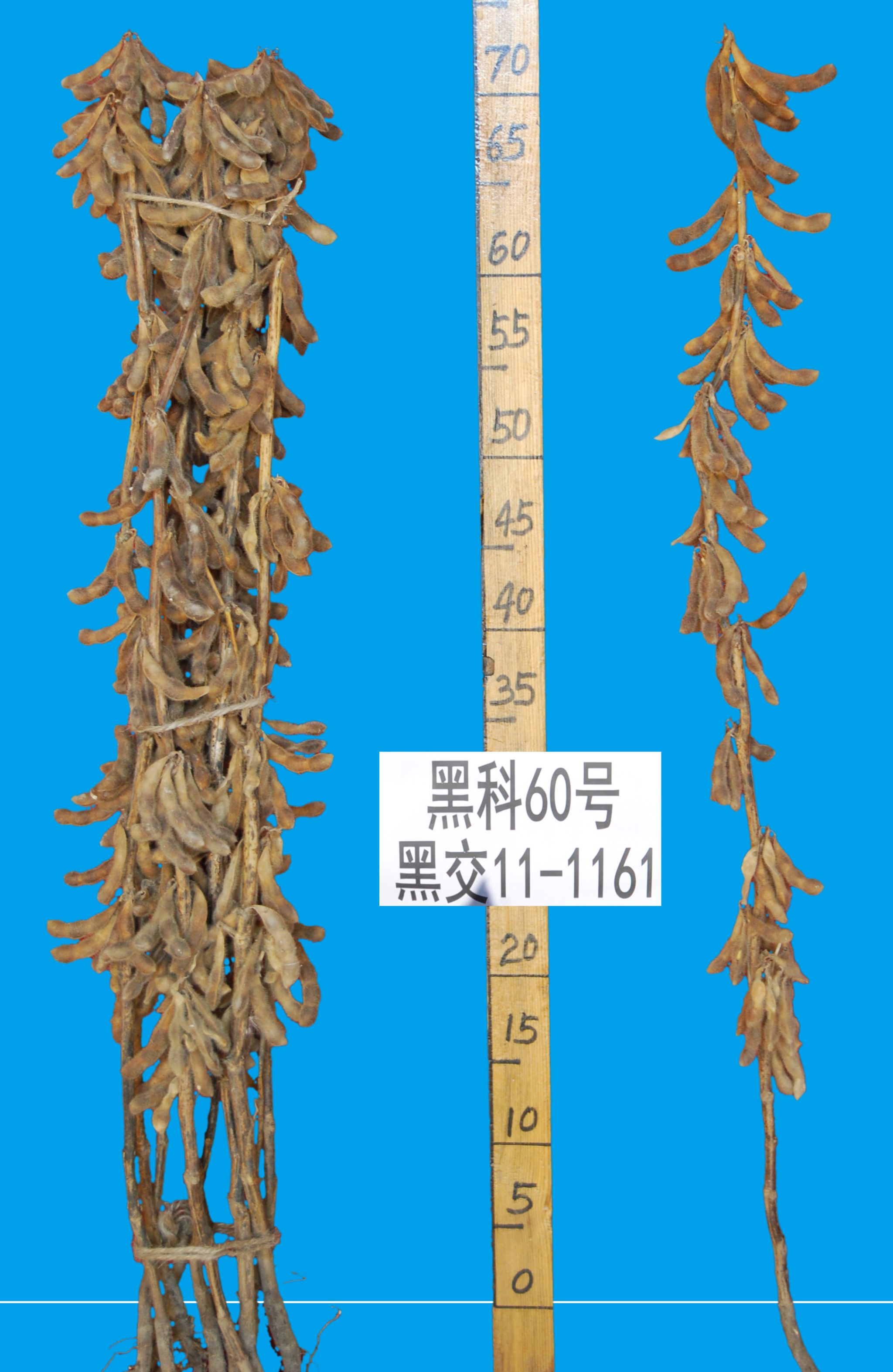特征特性:在适应区出苗至成熟生育日数113天左右,比黑河43号早熟2天左右,比黑河45号晚熟3天左右,需≥10℃活动积温2130℃左右。亚限结荚习性。株高75厘米左右,有分枝,紫花,长叶,灰色茸毛,荚镰刀形,成熟时呈褐色。籽粒圆形,种皮黄色,种脐浅黄色,有光泽,百粒重19克左右。两年平均籽粒粗蛋白含量40.04%(其中2015年化验结果为43.49%),粗脂肪含量20.21%。三年抗病接种鉴定结果:中抗灰斑病。