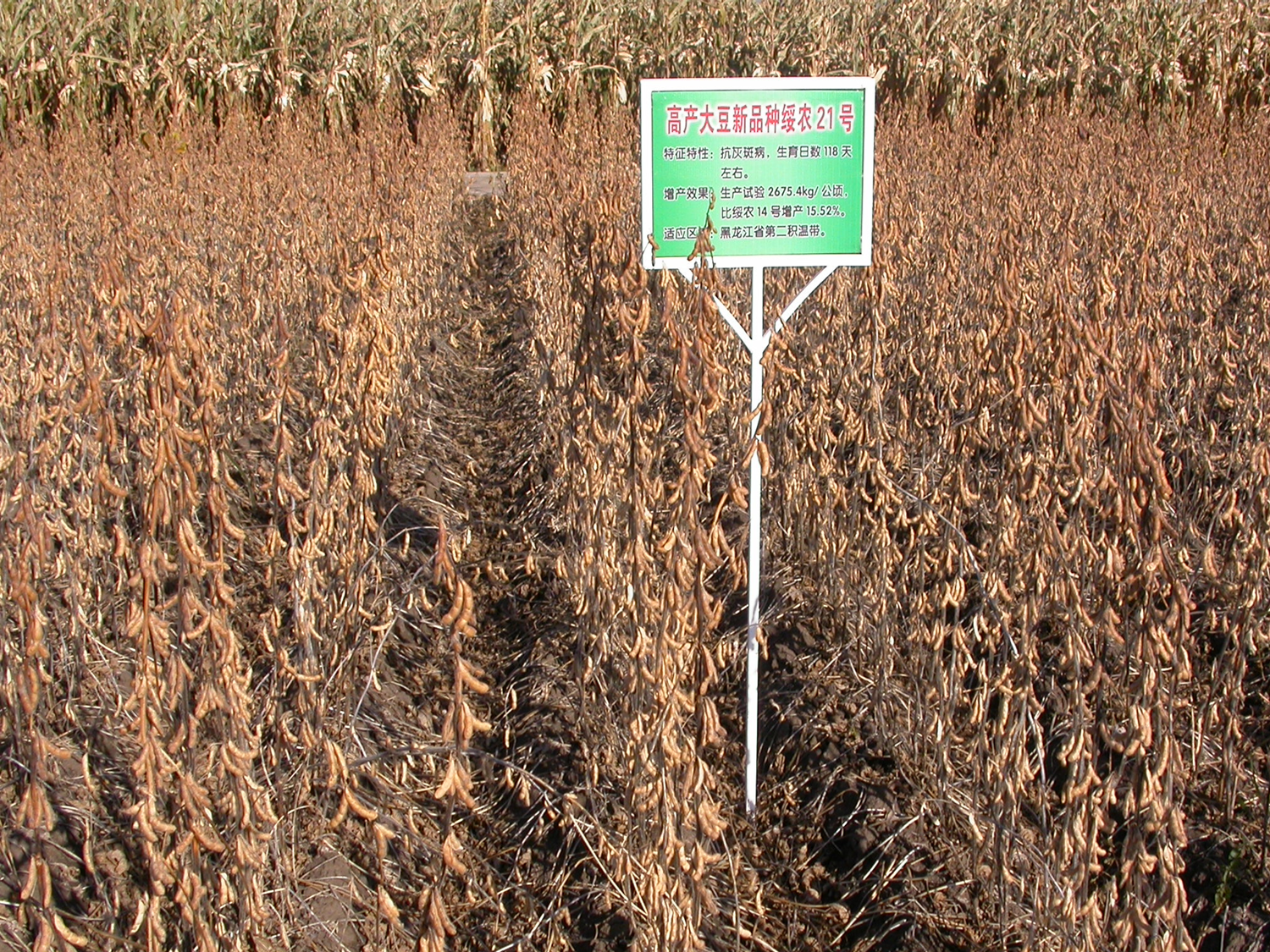 2001年区域试验平均公顷产量2811.7公斤,比对照品种合丰25增产11.2%;2002年全省六点区域试验平均公顷产量2604.2公斤,比绥农14号增产11.2%。全省两年区域试验平均公顷产量2708公斤,比对照品种增产11.2%。2003年参加全省生产试验,平均公顷产量2675.4公斤,比绥农14增产15.52%。