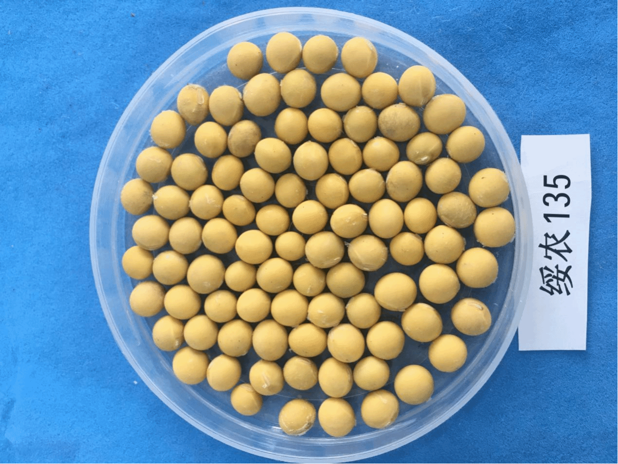 在适应区生育日数 120 天左右,需≥10℃活动 积温 2400℃左右。该品种无限结荚习性。株高 100 厘米左右,紫花,尖叶,灰色茸毛。籽粒圆形,种皮黄色,种脐黄色,百粒重 20.3 克左右。脂肪含量21.19%,蛋白质含量39.65%。接种鉴定为中抗灰斑病。
