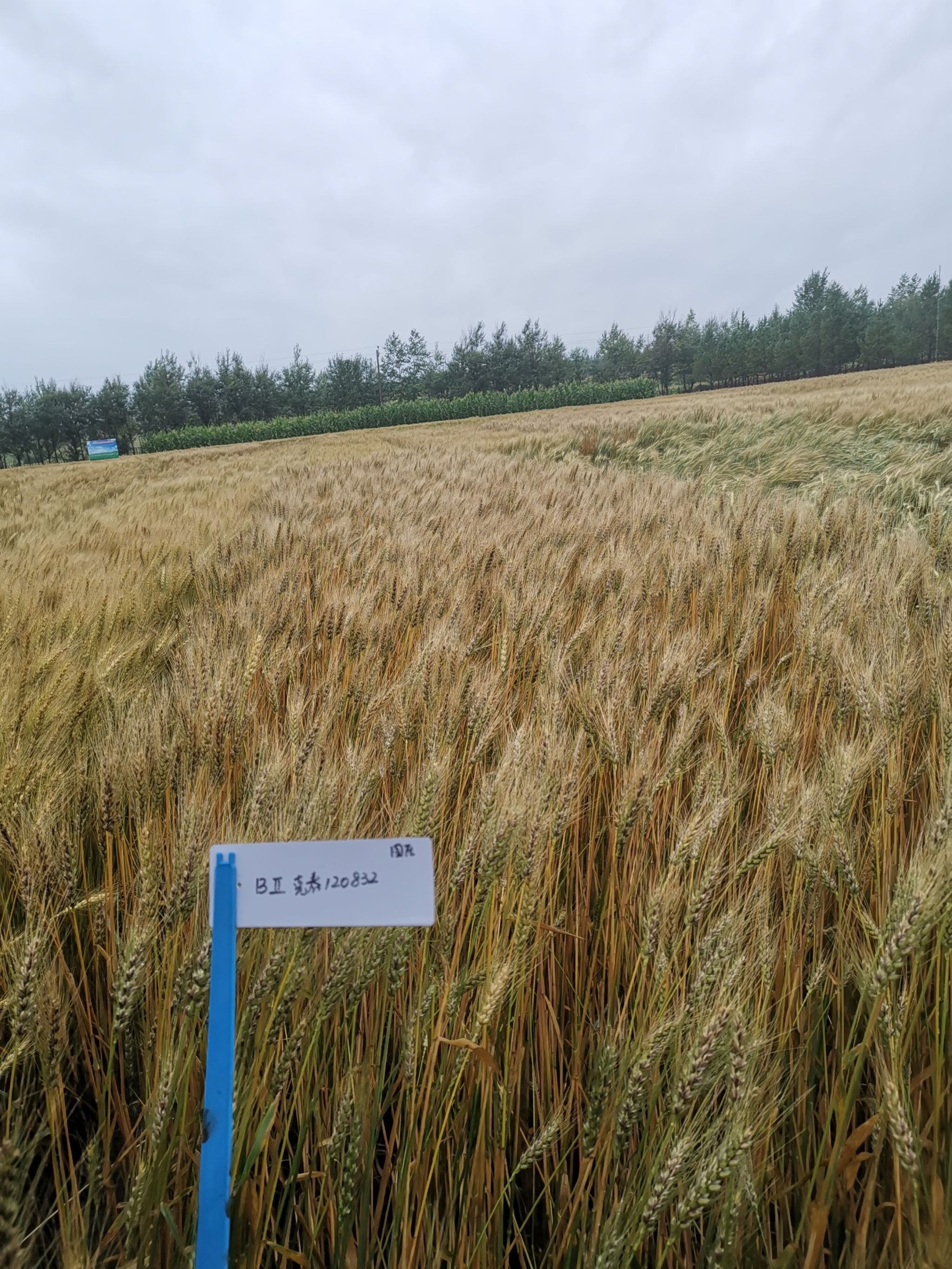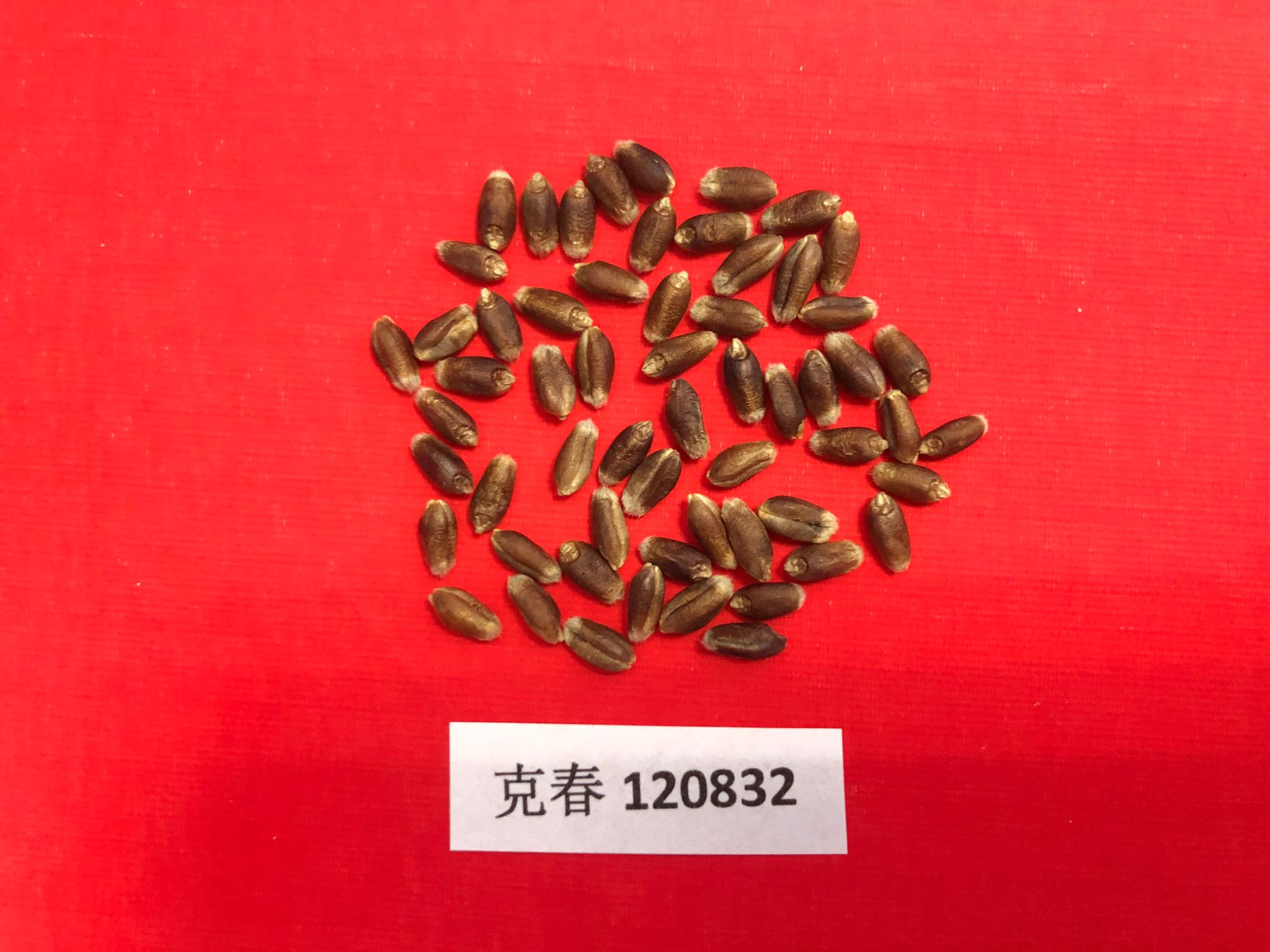 特征特性:克春120832号小麦品种属晚熟品种。在适应区出苗至成熟生育日数90天。该品种幼苗直立,株型收敛,株高103.5cm。穗长方型,有芒,紫粒,千粒重34.0g。