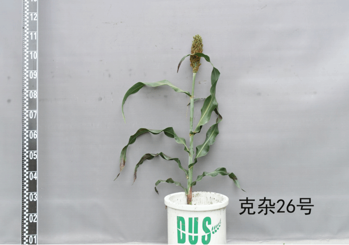 特征特性:酿造杂交种。出苗到成熟105天,活动积温2180℃以上,属早熟品种。芽鞘颜色紫色,叶脉颜色黄色。苗期长势强。根孽2个,株高97.4厘米,叶片数10片,穗型中紧,穗形纺锤形。穗长26.4厘米,壳色黑,粒色:橙色。穗粒重26.4克,千粒重23.6克,植株整齐度整齐,适口性差。