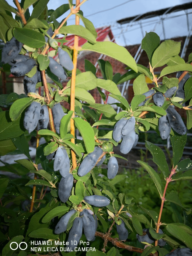 该品种以‘天鹅绒’为母本、‘灰姑娘’为父本,并利用‘蓓蕾’品种作为群体效应授粉材料,该品种在哈尔滨地区3月末开始萌动,4月下旬进入花期,果实6月中旬成熟,果实生育期约为45天。该品种叶为长卵圆形,对生,深绿色双面被毛,花双生,花筒外被毛,花冠为黄白色。该品种单果重1.1-1.7g,为椭圆形,果型指数为2.2,果皮为深蓝色,覆有白色果霜,果肉柔软细腻,风味酸甜适口,苦味较少。果实可溶性固形物为15.6%-17.2%,总酸含量12.0-13.6,花青素含量为3.57 mg/g FW(鲜重),总黄酮含量8.9 mg/g FW(鲜重)。总酚含量7.36 mg/g FW(鲜重)。耐寒性较强,可抗-40度低温,遭遇倒春寒时可正常开花。