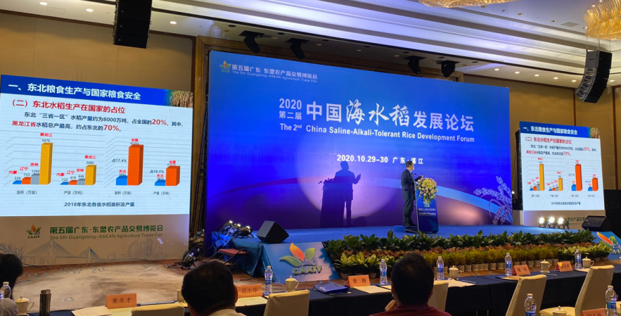 10月29-30日,由国家耐盐碱水稻技术创新中心、国家杂交水稻工程技术研究中心主办,广东海洋大学、国家耐盐碱水稻技术创新中心各分中心、广东东盟农产品交易博览会组委会承办的第二届中国海水稻论坛在广东省湛江市隆重举行。农业农村部、科学技术部以及来自广东、广西、江苏、湖南、海南、宁夏以及黑龙江等全国18个省(区)的科技、农业主管部门的领导嘉宾、百余所高等院校、科研机构的专家学者、研究生和海水稻产业链主要企业的代表等400多人齐聚湛江,深入探讨交流耐盐碱水稻发展的新技术、新成果、新动能、新模式,共同推动耐盐碱水稻事业高质量发展。我院副院长、国家耐盐碱水稻技术创新中心东北分中心主任来永才率领我院科研团队共计36人参加了此次盛会。
