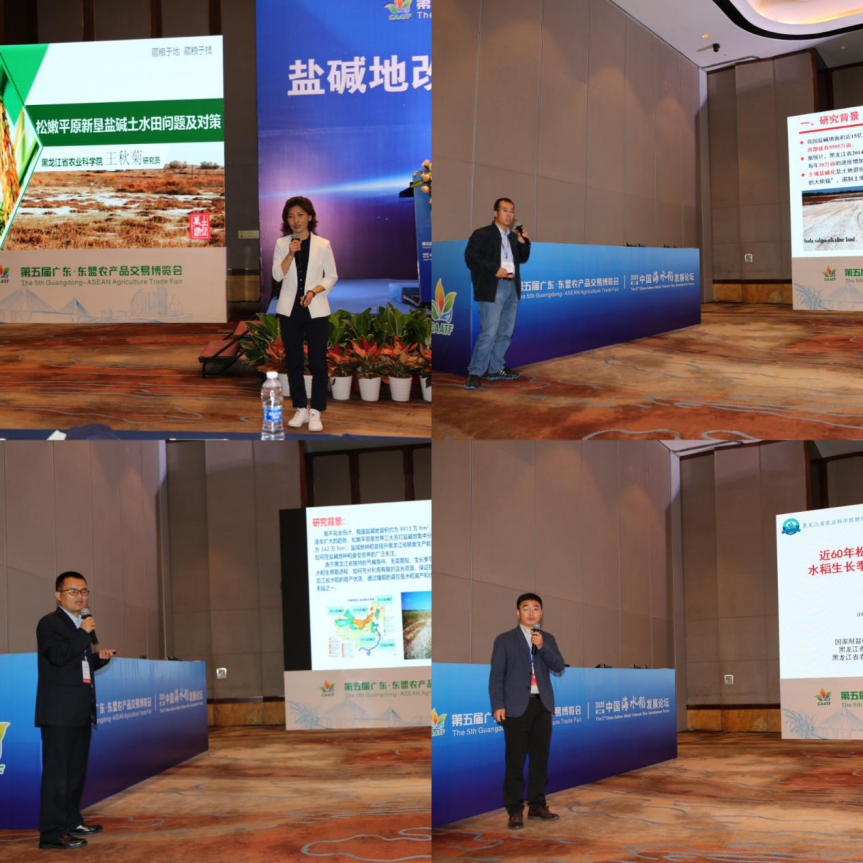 在平行论坛“盐碱地改良及海水稻生态调控”论坛上,我院耕作栽培研究所刘猷红、董文军、姜树坤,土壤环境与肥料研究所王秋菊四位青年才俊分别做了题为《播期调控对寒地粳稻产量和品质的影响》、《秸秆还田下不同搅浆、耕作技术对水稻秸秆腐解规律和碱土肥力的影响》、《松嫩平原新垦盐碱土稻田问题及对策》和《近六十年松嫩平原盐碱地区域水稻生长季的气候资源时空变化》的报告,受到了现场专家及与会代表的一致好评。