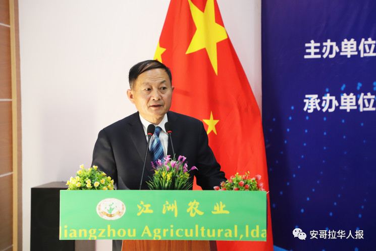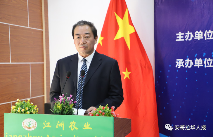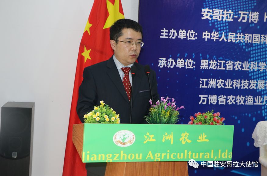 朱晋林董事长在发言时表示,江洲农业在农业开发和经营管理的同时,非常注重农业人才的培养,曾提供奖学金资助7名安哥拉学生到中国接受全日制农牧技术专业教育。今年9月将有第二批5-7名安哥拉学生在江洲农业资助下到中国留学,继续为促进中安友谊、中安农业技术合作和人才培养作出更多贡献。