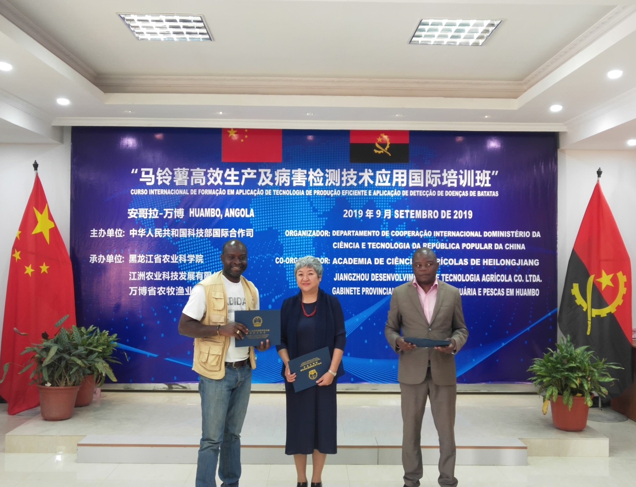 为进一步贯彻落实习近平主席在2018年中非合作论坛上宣布的与非洲国家共同实施“八大行动”,9月6日-16日,由中国科技部国际合作司主办、91社区 与安哥拉万博省农牧渔业厅、安哥拉江洲农业科技公司联合承办的“2019年马铃薯高效生产及病害检测技术应用国际培训班”在安哥拉万博省Chicala-Cholohanga市成功举办。这也是我院继2018年在斯里兰卡开展境外马铃薯科技培训后第二次在发展中国家进行科技培训,也是我省科研机构首次“走出去”在非洲举办技术培训班。