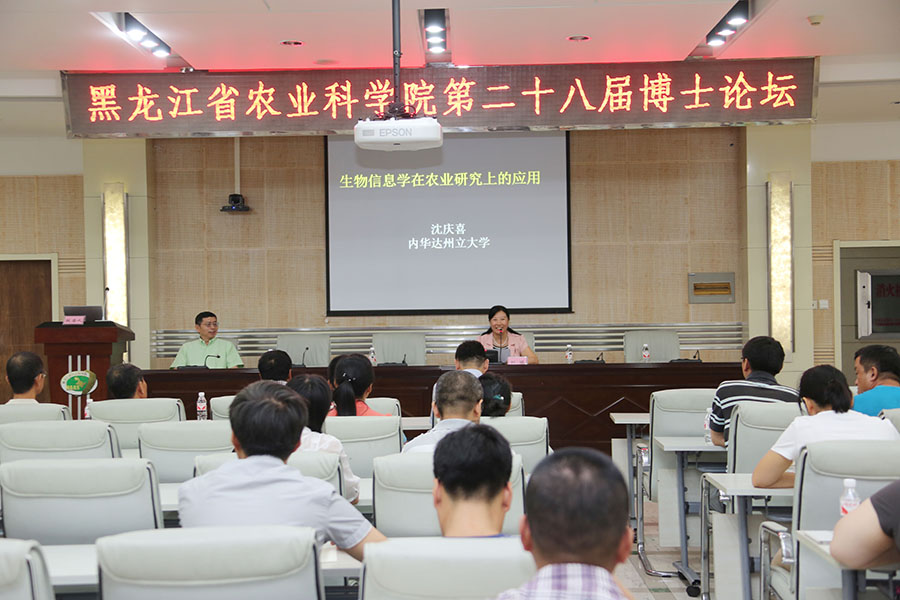 8月9日上午,由院博士创新联谊会和耕作栽培研究所、生物技术研究所、畜牧研究所共同举办的我院第二十八届博士论坛在院主楼一楼学术报告厅举行。本次论坛由邀请到的美国内华达州立大学生命科学院教授、博士生导师沈庆喜博士作了题为《生物信息学在农业上的应用》的报告。院博士创新联谊会成员和部分哈内研究所所长、科研人员等100多人在现场听取了沈庆喜教授的报告。