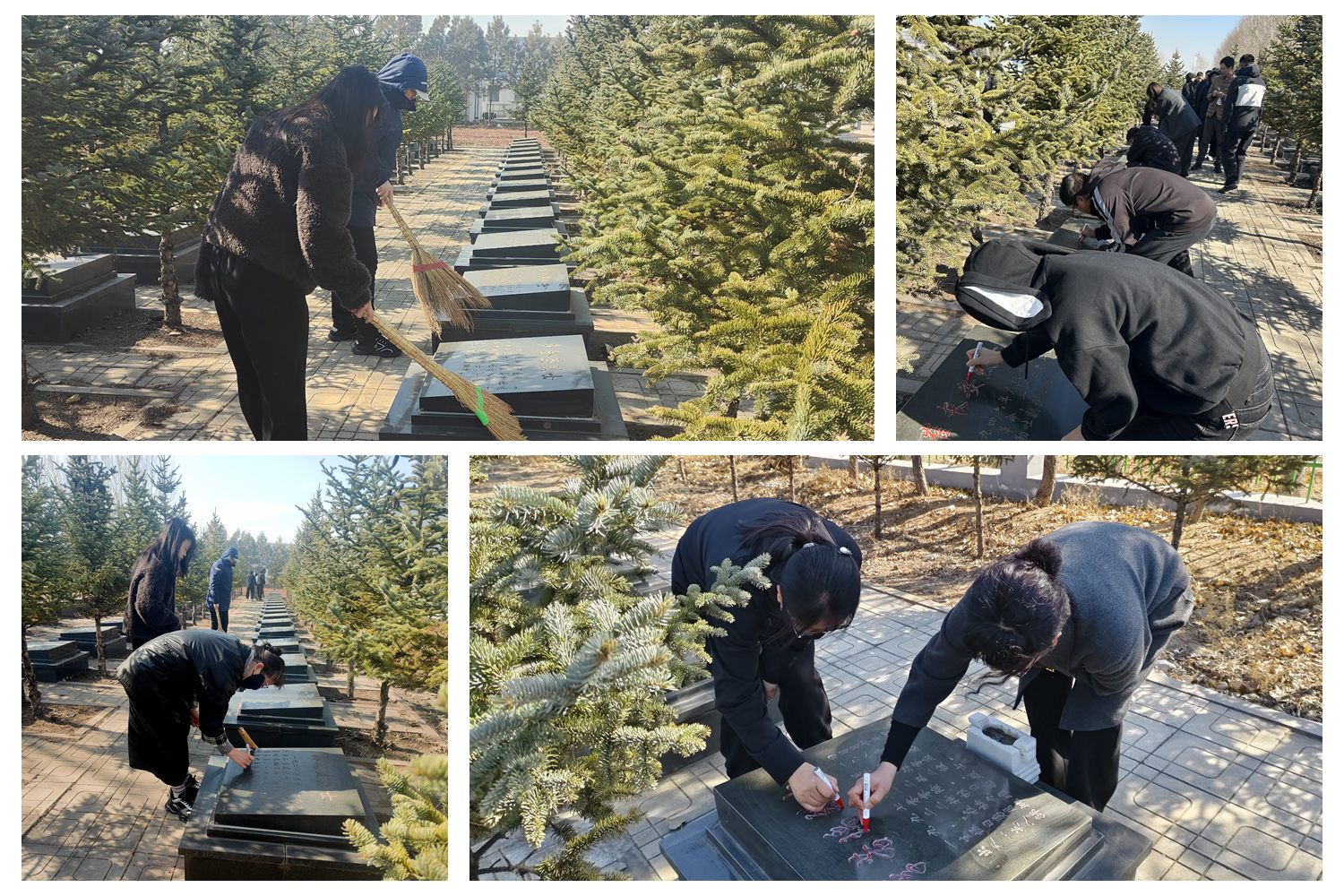祭扫过程中,党员干部们手持清扫工具,仔细清理烈士墓碑和陵园周边杂物,用心守护这片镌刻着英烈忠魂的红色净土;大家还躬身为烈士墓碑描红,悉心勾勒碑上的文字,让英烈姓名愈发清晰醒目。在一擦一扫、一笔一画间,党员干部们重温英烈的英勇事迹,深刻感悟他们坚守信仰、矢志不渝、无私奉献的崇高精神。