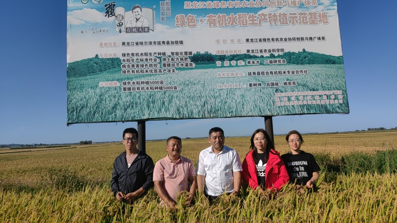 之后,专家组前往延寿县加信镇,来到了水稻覆膜田,这里也是黑龙江省绿色有机农业协同创新与推广体系水稻有机种植示范基地,信合有机稻米专业合作社负责人姚宏亮介绍说道“我们种植的是龙稻27水稻品种,这个品种产量高、杆硬,在专家的跟踪技术指导下,今年是个水稻丰收年”。专家也针对有机种植技术、适宜优质品种选择以及秋收注意事项,提出了宝贵意见。