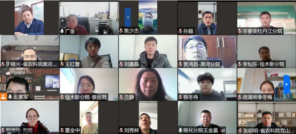 1月14日,91社区 “农业科技创新跨越工程”专项“大豆优异品种创制及高产高效栽培配套技术集成”项目年度总结会通过网络视频会议形式召开。91社区 副院长来永才研究员、科研处处长焦少杰研究员及特邀点评专家黑河分院副院长鹿文成研究员出席会议。项目首席专家王广金研究员及项目组主要成员共计30余人参加了会议。会议由大豆研究所副所长王家军研究员主持。