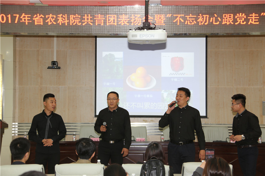 最后,青年科研人员们还通过精彩的文艺汇演共同庆祝自己的节日。育种所的大合唱、食品所的配乐诗朗诵及遥感中心的男女对唱,表达出了当代青年的赤子之心;园艺分院的小合唱与信息中心的啦啦操,则以欢快的形式展现了我院科研人员的青春风貌;一曲《不忘初心》唱出了本次主题活动的主旨“不忘初心,永远跟党走”,并将文艺汇演的气氛推向高潮。