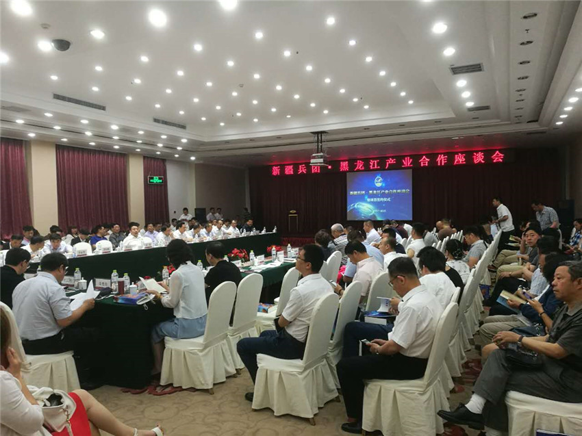 2017年6月16日,新疆兵团-黑龙江产业合作座谈会在哈尔滨北大荒国际饭店成功召开。我院纪检组组长杨波率人事处、栽培所、信息中心、畜牧所、草业所和园艺分院等相关单位领导作为援疆参加单位代表参加此次座谈会。新疆兵团相关单位领导和部分企业代表,黑龙江省国资委、省工商联、省农垦总局、伊春市人民政府及哈尔滨市工商联领导,兵团辽宁商会负责人及企业代表,黑龙江受邀企业家代表,新闻媒体代表等180多人参加了会议。