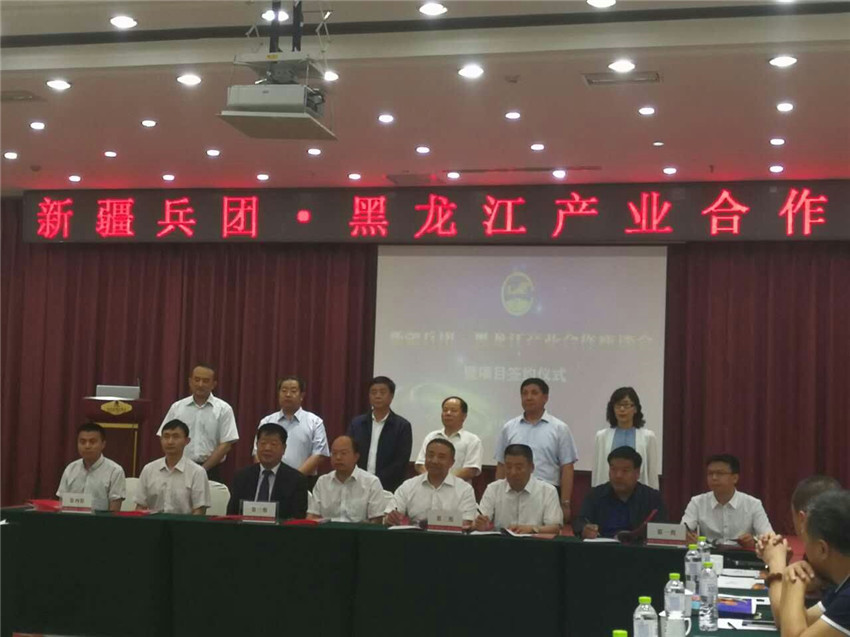 会上,新疆兵团和黑龙江省8家企业单位还签订了合作共建协议。开启了双方产业合作共建的又一崭新篇章,新疆兵团周国胜副秘书长、我院杨波组长、省农垦总局王立荣副局长、伊春市人民政府白波副市长、第十师北屯市党委常委、副政委、前指副总指挥范庆华政委和哈尔滨市工商联主席袁德柱同志共同见证了签约仪式。
