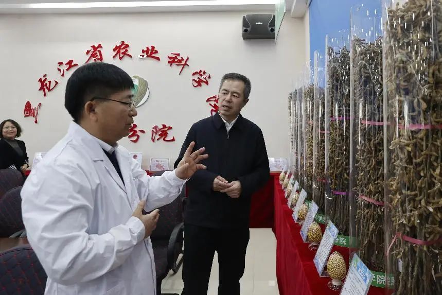 鹿文成对市领导的慰问表示感谢,对市委、市政府、市人大、市政协多年来为黑河分院发展提供的支持和在人才建设方面的关心关爱表示感谢,鹿文成研究员对分院“十四五”以来在科技创新、平台建设、成果转化、服务“三农”等方面工作取得的成绩向来访领导进行了详细汇报。