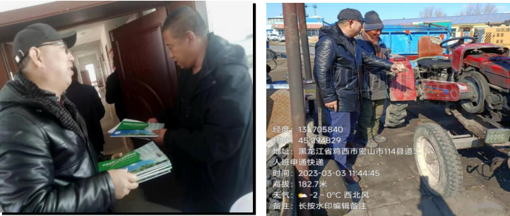 二、发挥农机专业优势,护航春播生产3月1日-3日,农机专家孙先明在二人班乡开展了农机使用维修培训。此次培训,有15个乡的农机工作负责人和农机操作人员参加。孙先明从拖拉机、整地机械、播种机械三个方面系统地讲解春季机械检修知识,解答了农机操作人员的问题,并发放了40余本农机使用和维修方面的科普资料。孙先明还深入二人班村、小黑河屯、杨木乡育青村,现场指导农户对农机具进行检修维护,为春播生产做好准备。