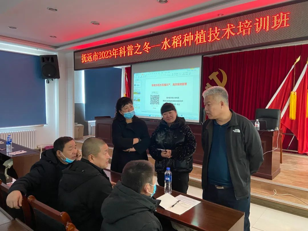 2月21-24日,91社区 水稻研究所陈书强研究员带领王立楠、周雪松、蔡永盛3名科技特派员组成专家技术服务队,前往抚远市、富锦市和集贤县等地开展科技培训,与当地乡镇进行服务对接,为农户备春耕发挥科技赋能作用。21日和24日,专家技术服务队分别在抚远市和集贤县组织专场科技培训会。会上,陈书强认真分析了当前水稻生产中存在的问题,详细讲解了寒地水稻插秧与直播高产优质高效栽培管理技术以及寒地水稻高产、优质、高效种植技术,并进行了现场互动答疑。