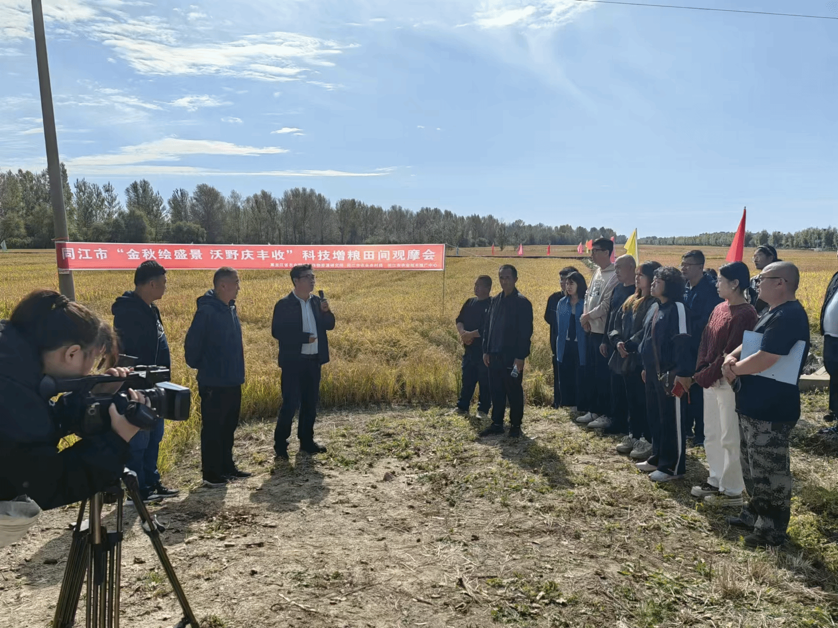 沃野流金时,丰收欢歌起。为庆祝第七个中国农民丰收节,推动农业发展及乡村振兴,进一步检验我所科技增粮工作新成效,9月24日,作物资源研究所于同江市召开“金秋绘盛景 沃野庆丰收”科技增粮测产观摩活动,作物资源研究所科技增粮服务团团长张春利,服务团成员王翔宇、丛万彪、辛洪梅、孙广全,同江市农业农村局、农业技术推广中心相关负责人、生产技术人员、种植大户等30余人参加活动。