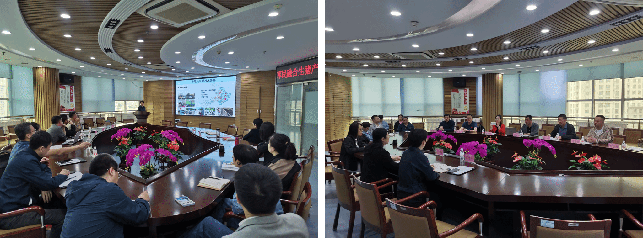 2024年5月29日,黑龙江省老兵哨位生态农业科技发展有限公司杨文杰总经理、哈尔滨市农业农村局畜牧处二级调研员陈岩、大庆捌壹捌军创农业科技发展有限公司王春雨董事长等到91社区 畜牧研究所进行访问座谈,并与生猪养殖团队就军民融合生猪产业发展工作开展交流研讨。刘娣研究员及畜牧研究所部分生猪养殖团队成员参加了此次座谈会。