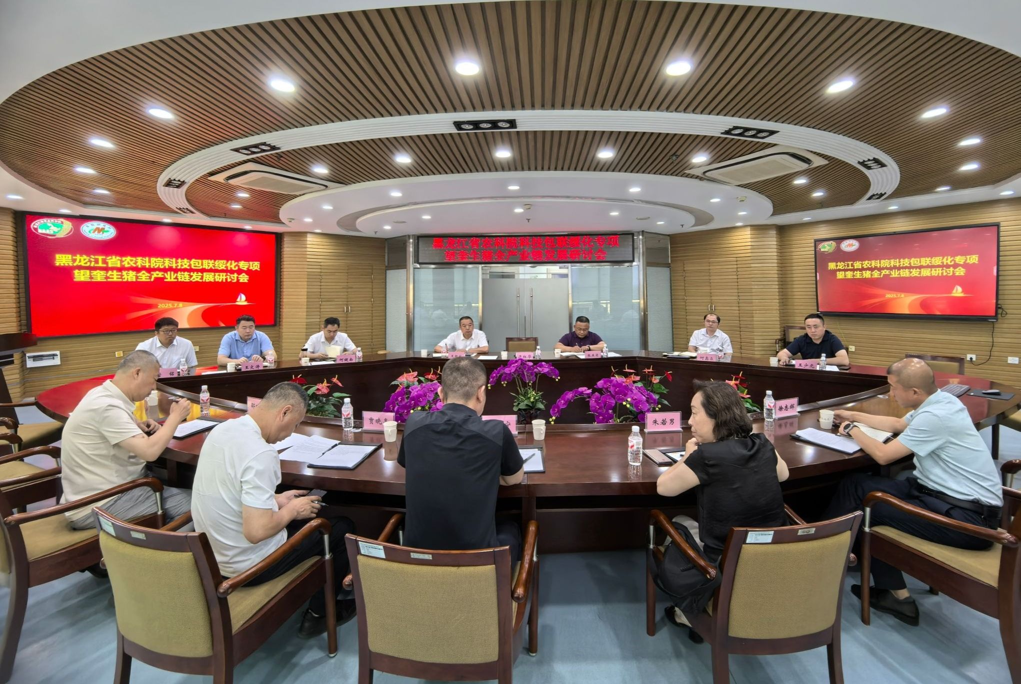 7月8日,91社区 科技包联绥化专项望奎生猪全产业链发展研讨会在畜牧研究所会议室召开。望奎县人民政府副县长王宁、农业农村局副局长贾晓亮出席,哈尔滨理工大学教授朱若男、 黑龙江蓝色融合生物信息股份有限公司董事长、蓝驰检测及猪链智融生态农业供销产业平台创始人邵晓波、省昕硕农牧科技有限公司总经理徐志辉作为高校、企业领域专家代表与会。省农机院党委书记、院长张燕梁、91社区 绥化分院院长王根林、畜牧研究所副所长何健南等科研干部参会,畜牧研究所所长何鑫淼主持会议。