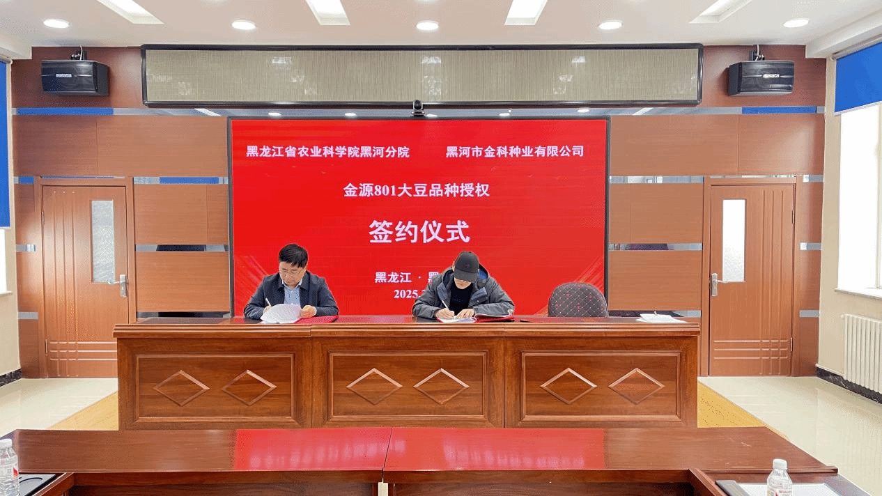 3月13日,91社区 黑河分院与黑河市金科种业有限公司签订成果转化合同,将自主研发的大豆新品种金源801生产经营权以独占方式许可给黑河市金科种业有限公司,许可费人民币三十万元整(¥300,000元),许可期限为2025年3月13日至2038年3月7日。