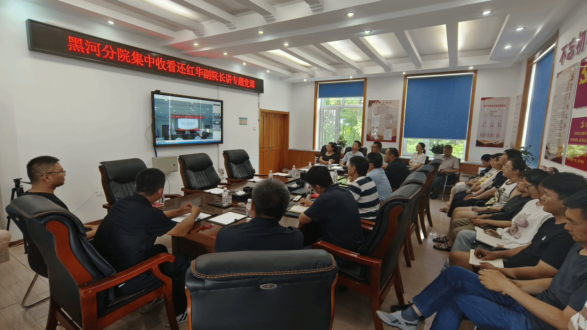 组织分院党员参加社区党委《一生交给党》红色观影活动。组织党员干部集中收看院长陈宇辉、副院长还红华讲学习教育专题党课。黑河分院党委与五大连池市农技中心党支部联合开展“庆七一 追寻抗联足迹 传承红色基因”红色教育培训活动,通过红色教育、廉洁教育、党史教育,进一步锤炼党性修养、提高思想觉悟、深化学习教育成果。