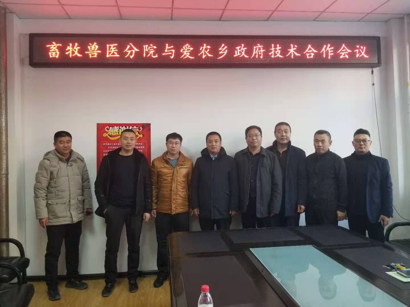 为更好推广科技成果,将科技成果落实农户家,11月23日下午畜牧兽医分院与拜泉县爱农乡政府在分院南区举行了技术合作洽谈会,分院院长史同瑞、副院长王洪宝、李洪彬、江波涛与爱农乡政府党委书记史兴平、中家村乡长穆占参加会议。双方在会上签订了技术推广与服务协议,计划在科技成果推广、人才培养、畜牧健康养殖、项目争取等方面开展全面合作。