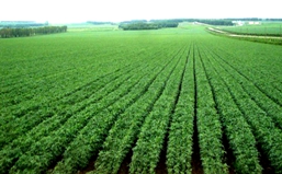 “半矮秆大豆窄行密植高产栽培技术”打破了传统的 “高秆品种、宽行种植”的思维定式,采用逆向思维方式。在选用半矮秆品种基础上,第一,缩小行距,将原来65-70cm垄距改为45、30或19cm更窄的行距;第二,扩大株距,将原来5cm株距增加到9-12cm,构建成“密中有稀、稀中有密”的合理群体结构;第三,增加密度,密度由原来平方米保苗25-30株增加到45-55株,实现植株在田间均匀分布,提高光能利用效率,提高大豆单产。