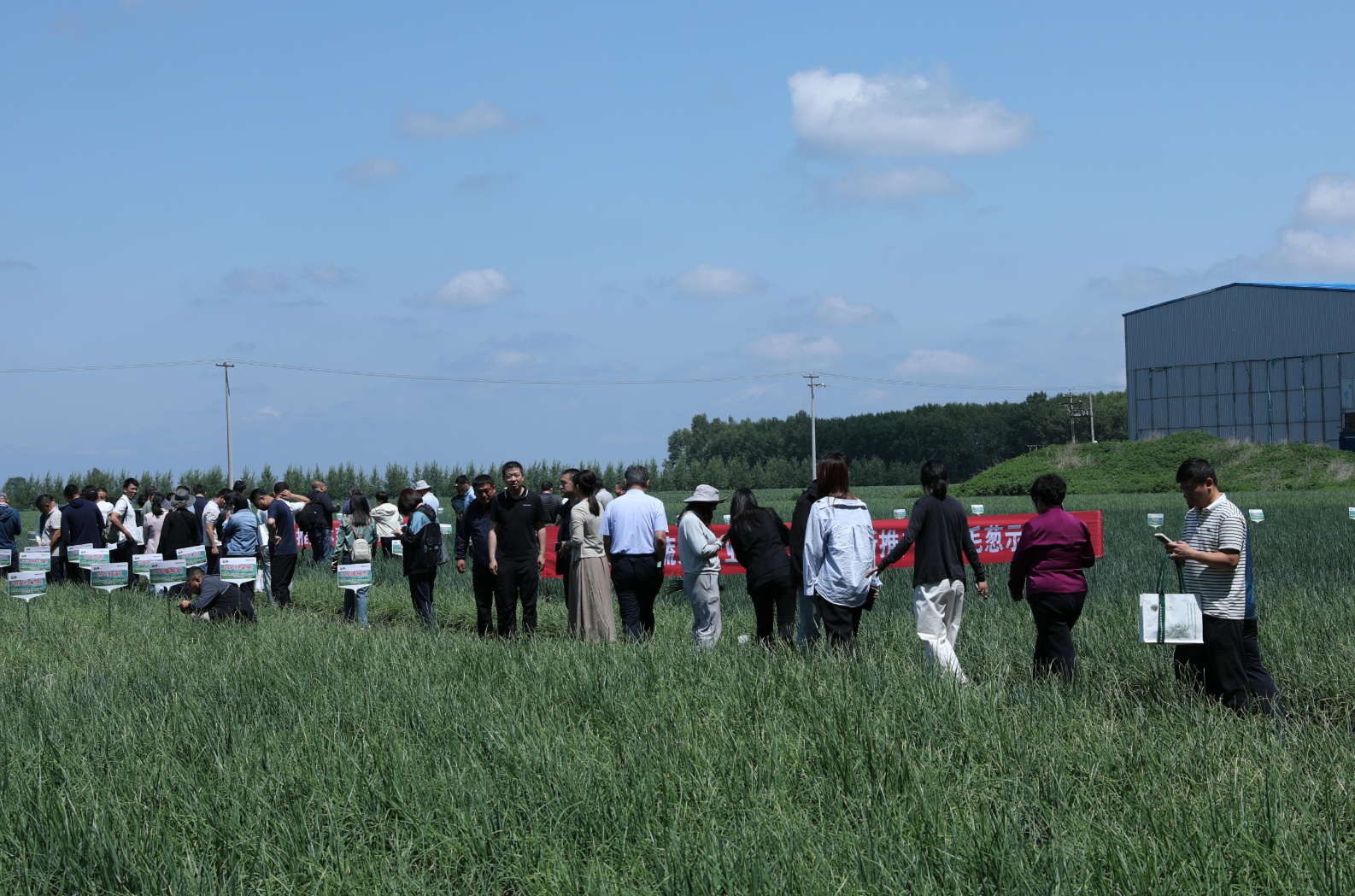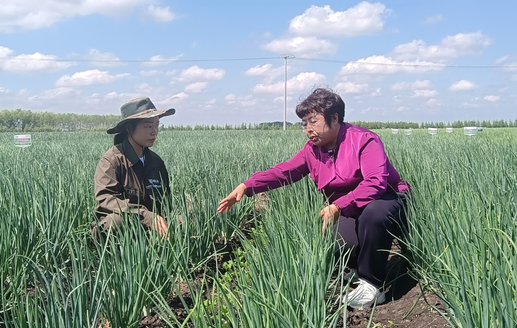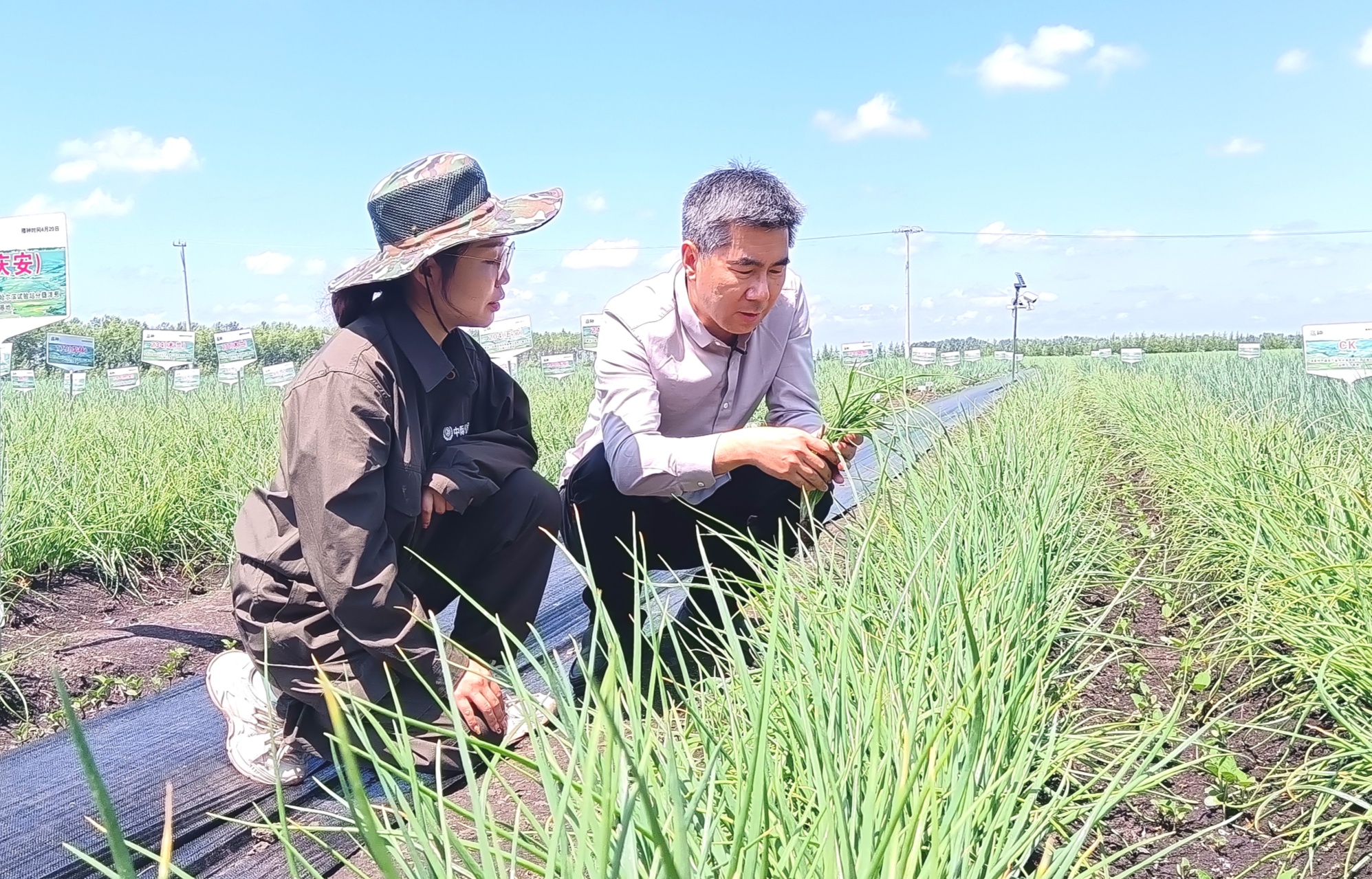 20日中午,全国部分高校及科研院所专家学者们,来到了位于海伦市前进镇胜利村的农业科技示范展示基地。这个基地种植了上百个毛葱品种,专家学者们俯身查看毛葱长势,不时相互交流。