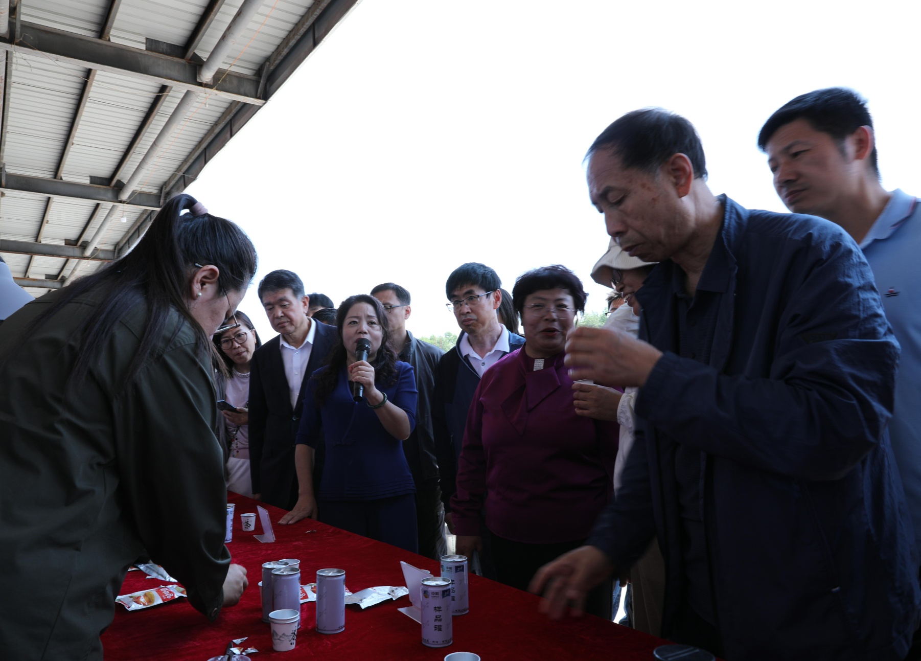 专家学者在品尝毛葱深加工产品(央广网记者陈显春 摄)