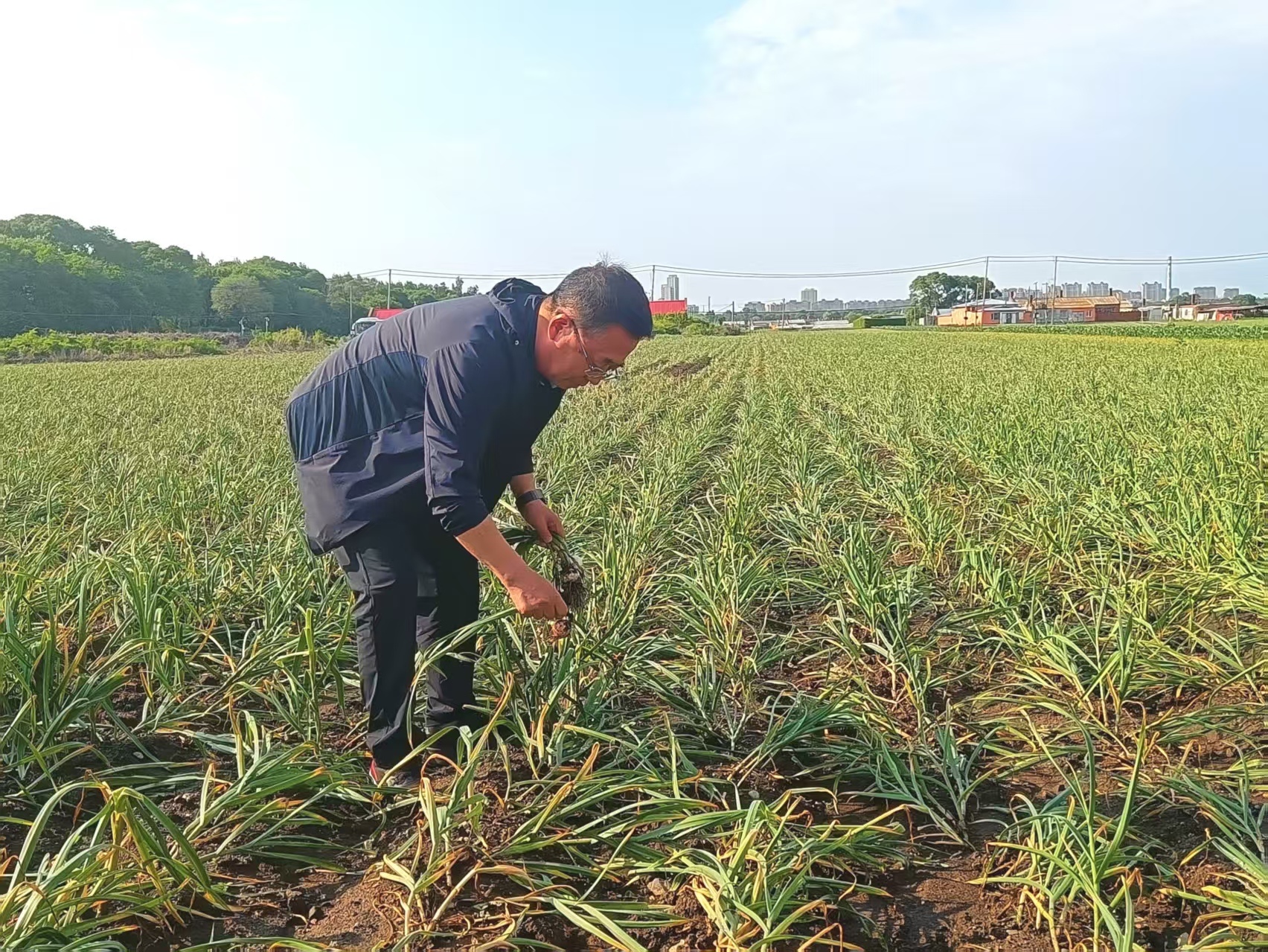 央广网哈尔滨6月21日消息(记者陈显春)6月19日至21日国家特色蔬菜产业技术体系“分蘖洋葱(毛葱)全产业链示范观摩及产业高质量发展论坛暨中国园艺学会葱姜蒜分会2025年年会”在哈尔滨召开。6月20日,与会专家学者深入绥化市海伦中际农副产品有限公司及哈尔滨市阿城区白城村独头蒜生产基地观摩,从种子选育、种植技术、病虫害防治、产业发展等现场指导种植户及企业,为黑龙江毛葱、独头蒜产业高质量发展献计献策。