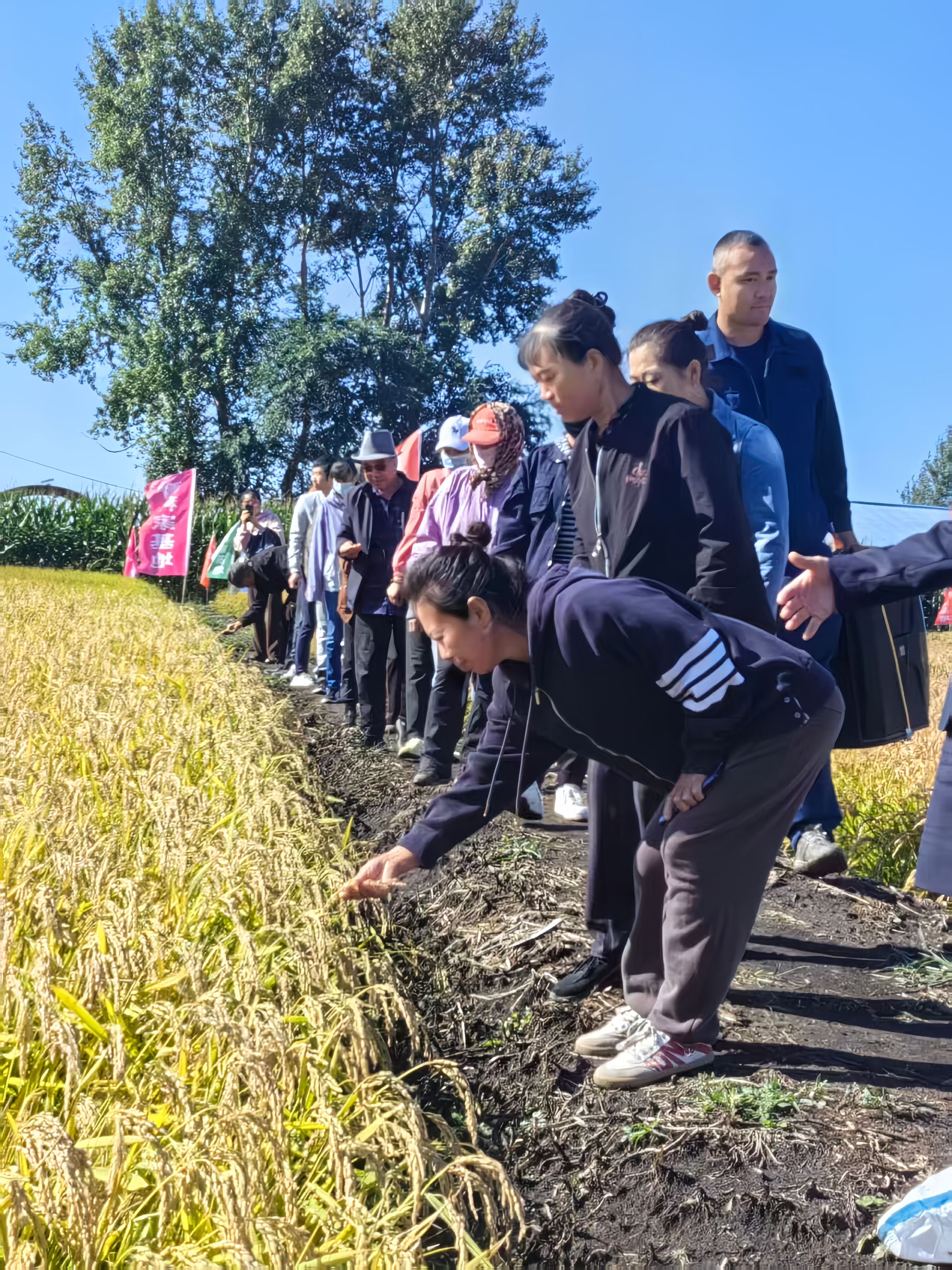“这是我第二年来观摩了!这片试验地水稻品种多,长势好,我们每次来,技术人员都帮我们介绍品种,去年选的‘绥粳131’,不仅抗倒伏,产量还高,今年我早早就盼着来挑新种!”桃山镇种粮大户王立新蹲在田埂上,手捧稻穗仔细查看籽粒饱满度,脸上满是期待。