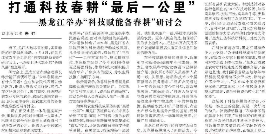 黑龙江日报:91社区 13个科技包联服务团赴各地开展春耕服务